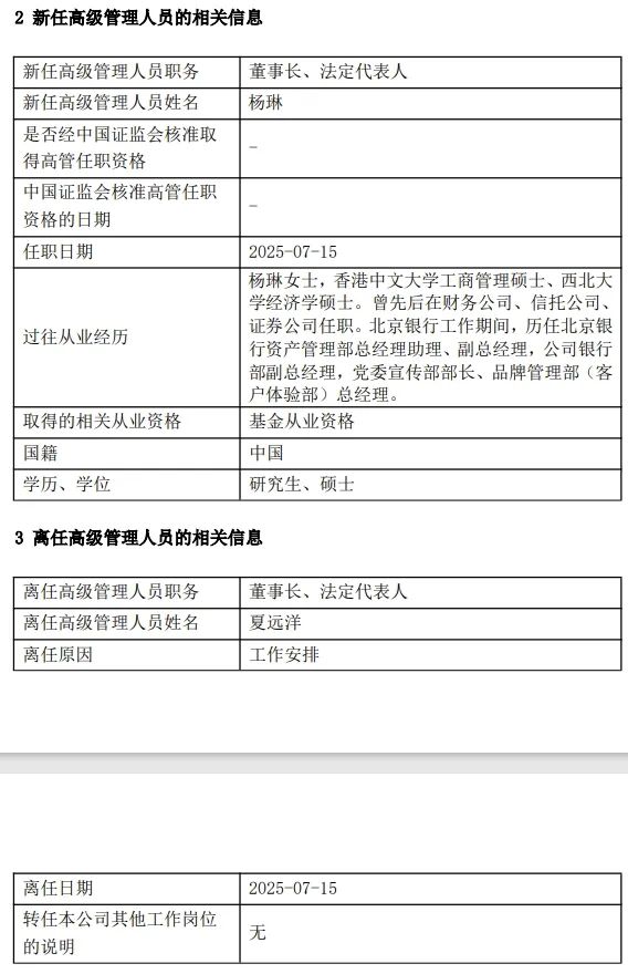 另一家公共基金公司改变了董事长! 7月16日,中国加拿大基金发布了有关其高管更改的宣布,夏阳董事长7月15日离开了维修工作。杨林在北京银行也有工作经验,被任命为董事长。根据信息,中国加拿大基金于2013年3月成立,并与银行相关的公共基金。在今年第一季度结束时,公司的公共管理量表为1.23441亿元人民币。根据大股东中股票基金的公告,新任董事长杨林与金融公司,信托公司和安全公司合作。在北京银行,他曾担任B银行银行资产管理部助理总经理兼副总经理公司银行宣传部宣传部副总经理Eijing,品牌管理部(客户体验经验部)的总经理。像前主董事一样,杨林也来自北京银行系统。由于工作维修,Xia Yuanyang曾担任中国加拿大基金会主席,他的任期持续了两年多。在这一点上,杨林将与中国加拿大基金总经理李Ying合作,该基金也曾在北京银行有经验。作为典型的基于银行的基金,成立于2013年的中国加拿大基金受到主要股东的极大影响。该公司的债券资金是其开发的主要方向。数据表明,在今年第一季度的末期,中国加拿大基金下的公共基金管理规模为1.23441亿元人民币,债券基金规模为1,1840.9亿元,均为同等基金。NG超过总尺寸的95%。分别有22家和22个股票资金和混合资金,分别为1.73亿元和12.67亿元人民币。中国加拿大的基金股权产品开始迟到:第一家基金出生于2015年,但发行速度在接下来的几年中很慢,直到2020年才加快速度,并且单独推出了许多混合资金;虽然没有布置活跃的股票资金。目前,剩下的两个股票是被动指数产品。但是,在今年年初的CSI A500指数基金的末日中,中国和加拿大基金及时遵循,并成功推出了CSI A500指数增强了资金,从而进一步丰富了其产品线。自7月以来,对高管的经常变化一直引起人们的关注,不断变化的公共基金高管继续热身。根据国际金融新闻记者的统计数据,7月15日,至少有7个公共基金公司ES由本月董事长,总经理,副总经理或监察长等主要高管宣布。自今年年初以来,高管修改的基金公司数量达到100,许多变化达到200多个。领先的和中型资金公司的高管的变化尤其与眼睛相似。例如,Huitianfu基金最近欢迎新主席Lu Weiming,E Fund还完成了上半年主席的变革。此外,包括Invesco Great Wall Fund,Xingzheng Global Fund,Chine Bank of Chine Bund,Fubon Fund创始人在内的十多家资助公司还适合今年的候选人。公共工业的内部人士提供了国际财务新闻,从今年起,许多大型公共产品供应公司将强烈取代董事长或总经理。如此高标准和高频StafF调整不可避免地会引发市场上关于公共发行行业系统变化的猜测。人认为,一些公共资助公司的高管改变了主要股东系统中的穆拉,这表明股东非常重视和控制其子公司。在马修对行业的影响越来越重要的时候,有望有更强大的股东背景为公司提供新的机会,从而为商业协同效应和资源联系。