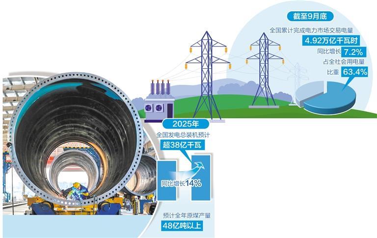 位于甘肃省酒泉经济技术开发区的中国水电四局(酒泉)新能源装备有限公司塔筒制造车间,工人们正在焊接风机塔筒。新华社记者 郎冰冰 摄 能源供应稳定稳定,可再生能源装机规模持续扩大,全国统一电力市场日臻完善,能源技术创新频出,能源稳投资促增长作用充分发挥……今年以来,全球能源供应链不断拓展,从“逆能源产业有进步”到“逆能源产业有进步”,以创新为发展中心,把经济市场与“稳”结合起来,确保经济发展供给侧结构性改革,以绿色创新“进步”点燃高质量发展新引擎,交出年度答卷稳定、动力更强劲、背景更绿色。继续加强迎峰度夏供电保障,是对全国电力行业水平的考验。今年夏季,我国用电负荷持续创新高。 7、8月份,全国用电量突破万亿千瓦时,创下历史最高纪录,在全球尚属首次。面对严峻挑战,我国充足优质电力供应有力保障经济社会高质量发展。充足的电力能源背后是我国能源供应保障能力的不断提升。记者从召开的2026年全国能源工作会议获悉,今年能源安全保障有力有效,供给保障成效是“十四五”以来最好的一年。总发电装机容量全国电量预计突破38亿千瓦,同比增长14%,全社会用电量首次突破10万亿千瓦时。原煤年产量预计将超过48亿吨,煤炭供应裕度保持在合理水平,供应弹性持续增强。油气增储上产“七年行动计划”圆满结束。到2025年,我国油气产量将再创新高,原油产量达到约2.15亿吨,天然气产量超过2600亿立方米。这是连续第九年产量增幅超过100亿立方米。在保障能源供应方面,市场机制发挥着重要作用。今年以来,国家发展改革委、国家能源局积极推进全国统一电力市场建设,市场交易电量规模和经营主体数量持续增长。截至9月底,全国电力市场累计交易量4.92万亿千瓦时,同比增长7.2%,占全社会用电量的63.4%。国家能源局市场监管司副司长张彦勤表示,今年迎峰度夏期间,全国用电负荷四次创历史新高。全国统一电力市场充分发挥电力资源“调节器”和引导价格“指挥棒”作用,利用市场机制激励各经营主体多方位发力,共同助力迎峰度夏电力保障任务顺利完成已完成。值得注意的是,跨地区、跨省区的电力资源配置作用日益凸显。迎峰度夏期间,省际现货市场支持四川、重庆等20多个省份应对极端高温,保障电力供应。 7月至8月支撑四川最大电力供应超过800万千瓦。国家能源局发展规划司副司长邢一腾表示,今年以来,我国能源供应保障有力有效,多个政策文件认真出台,引导行业正确发展。发展中,能源充分发挥稳投资、促增长的作用,新能源体系建设持续推进,助力我国经济持续崛起和发展。结果的绿色变化是显着的。 9月20日,随着工作人员按下按钮,水闸缓缓降下,国家水利工程重点建设工程大石峡水利工程开始蓄水。历时近6年的大石峡水利枢纽工程,正式进入冲刺阶段,首台机组投产发电。大石峡水利枢纽工程创造了混凝土面板碎石坝修建的世界纪录——最高坝高247米,相当于80多层楼高。该项目拟安装3台25万千瓦水轮发电机组,总装机容量75万千瓦。中国能建葛洲坝集团董事长谭华表示,大石峡水利枢纽工程担负着南疆四地州电力系统调峰任务,同时还考虑综合功能例如灌溉和防洪。项目建成后,每年可生产超过18亿千瓦时的清洁电力,满足65万户家庭一年的用电需求。我国可再生能源装机规模不断扩大,有力促进了能源结构优化。截至今年9月底,全国可再生能源装机容量达到21.98亿千瓦,同比增长27.2%,约占我国电力总装机容量的59.1%。其中,水电装机4.43亿千瓦,风电装机5.82亿千瓦,太阳能发电(含光热)装机11.27亿千瓦,生物质发电装机4700万千瓦。国家能源局预计风电、光伏产能将全年新增装机约3.7亿千瓦,利用率保持在94%以上。风电、光伏发电将占社会总用电量的22%左右。今年9月24日,我国在联合国气候变化峰会上公布了新一轮国家自主贡献目标,明确2035年我国风电、太阳能发电总装机容量将是2020年的6倍以上,力争达到36亿千瓦。截至今年9月底,我国风电、太阳能发电总装机容量突破17亿千瓦。为实现2035年独立贡献的目标,未来10年每年新增风电、太阳能装机容量约2亿千瓦。 “我国资源丰富,产业基础雄厚,市场需求巨大。我们“我们有决心、有信心实现2035年风能、太阳能装机独立贡献的目标,但还需要付出更多的努力。”国家能源局综合司副司长张兴表示,“十五五”时期是攻坚克难的关键五年,要在持续蓬勃发展、总量提升的基础上,加快新能源“立”、“靠”,实现更大、更高质量、稳定发展。进一步扩大新能源供给,积极推进新能源综合发展,扩大新能源非电利用,全面提高新能源消费水平,健全适应新能源高比重的市场和价格机制,为应对冬季高峰做好准备是关键。冬季用电高峰来临,全国供电、供暖需求增加。保障能源电力供应、确保人民群众过暖冬,是当前能源工作的重中之重。随着我国电气化率不断提高,稳定电力供应是重中之重,电网设备保障冬季用电高峰期可靠用电。供应基地。在安徽省阜阳市太和县35kV红山变电站,国网阜阳供电公司创新性地采用了“输电线路+单主变+环网柜”组合方案和单主变两次停运建设模式,使检修工作由原来的13天停电时间缩短为2天,电力运行状况明显改善,提高了电力运行效率。冬季用电高峰期区域电网可靠性。陈斌 组长公司数字化与智能化配网部表示,公